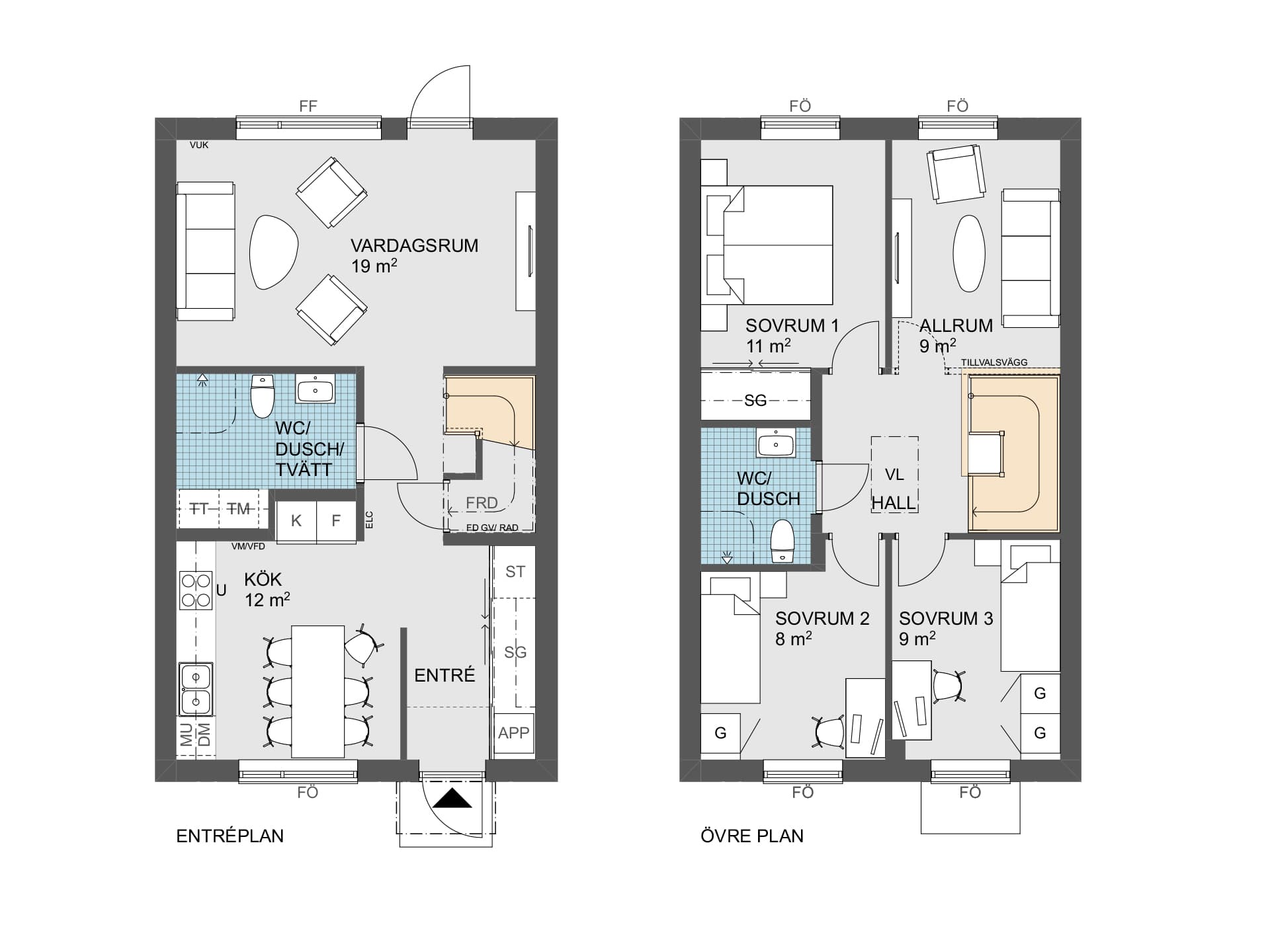 Under trappan finns ännu ett förrådsutrymme och på ovanvåningen hittar du tre bra sovrum samt ett öppet allrum, som kanske bjuder in till bokläsning eller TV-spelskvällar? Det kan också göras om till ett fjärde sovrum om du önskar det. Det största sovrummet har rymliga skjutdörrsgarderober med plats för alla kläder. Här uppe finns även hemmets andra badrum med wc och duschhörna, som förenklar morgonbestyren i den större familjen.