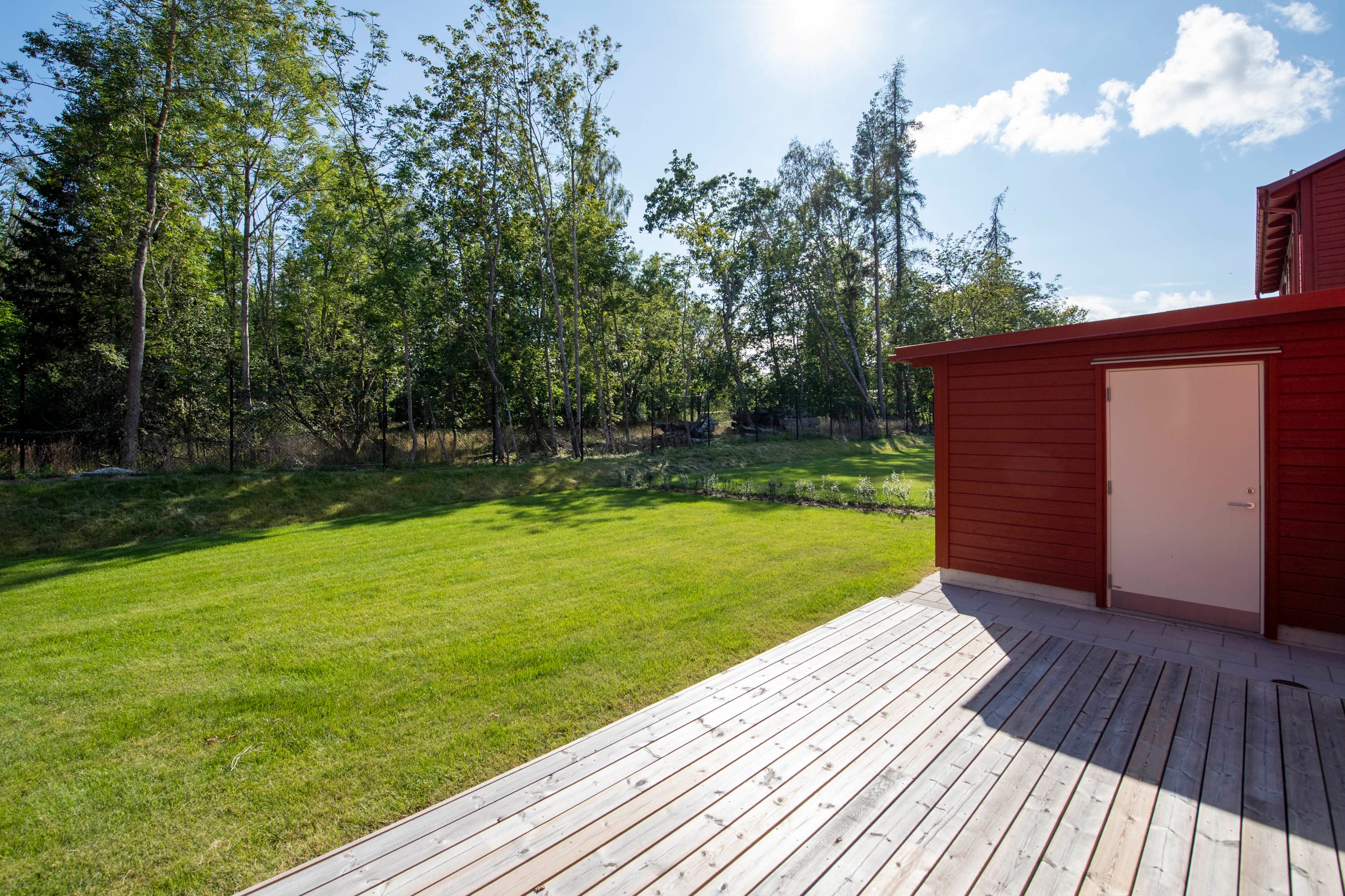 Här får du stor studsmattevänlig trädgård i söderläge, uppfart med carport och plats för två bilar (samt en massa prylar). Grönt, skönt och insynsfritt då en generös gräsmatta möter lummigt skogsbryn i tomtgräns. Uteplats med trädäck i söderläge och plats för studsmatta, odling och härliga grillkvällar. Här får du samma känsla som i egen villa samtidigt som du kan njuta av ett lättskött boende i bekväm bostadsrättsform.
