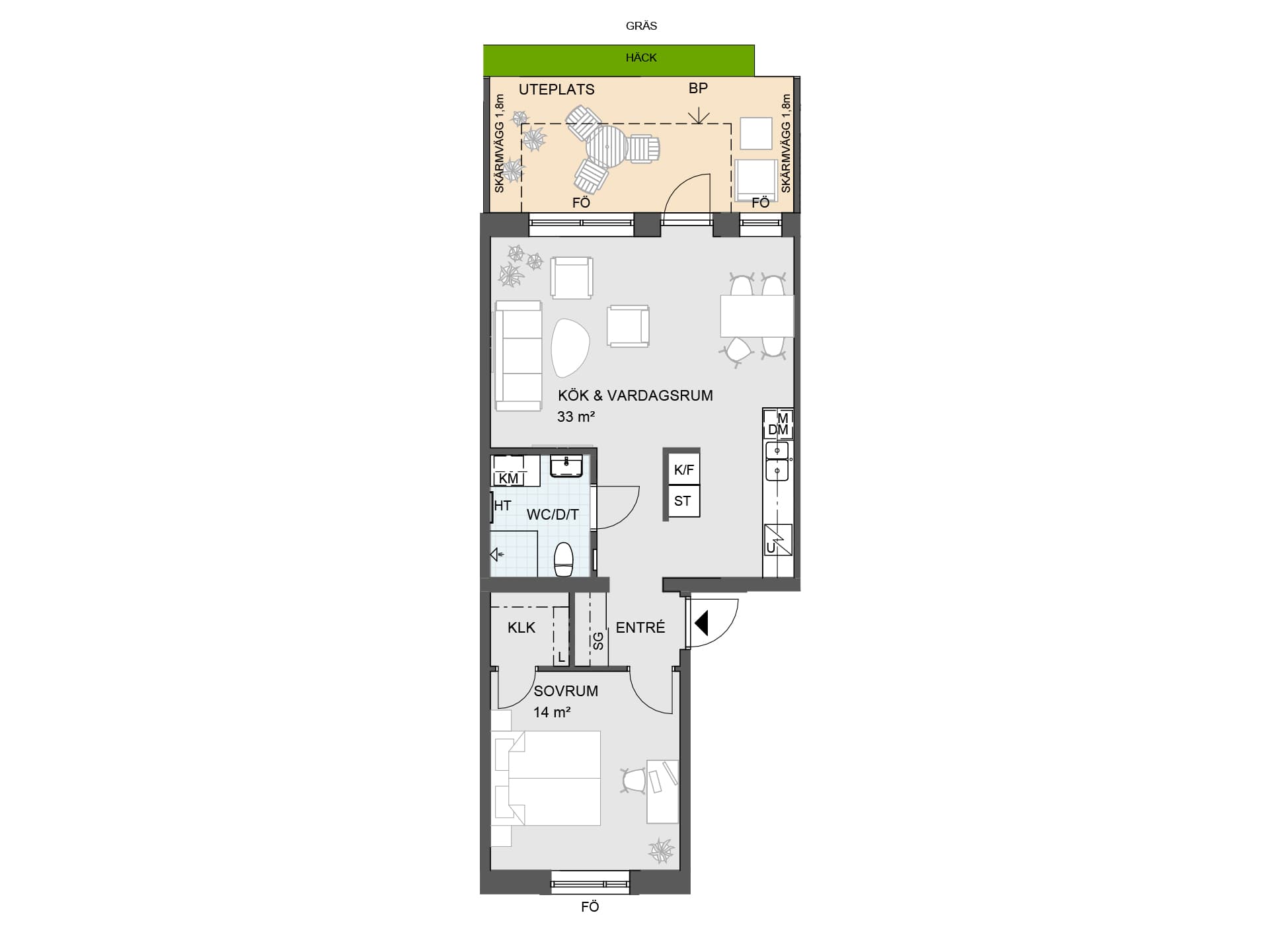 Välkommen till en väldisponerad tvåa om cirka 58 kvadratmeter i markplan – med uteplats mot innergård, genomgående planlösning och smarta förvaringslösningar.