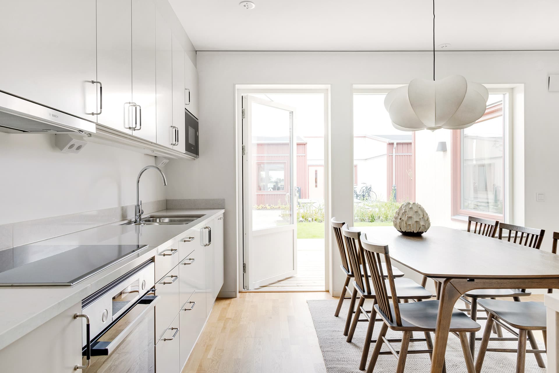 kliver rakt in i ett luftigt kök. Här har du möjlighet att välja till en härlig köksö där