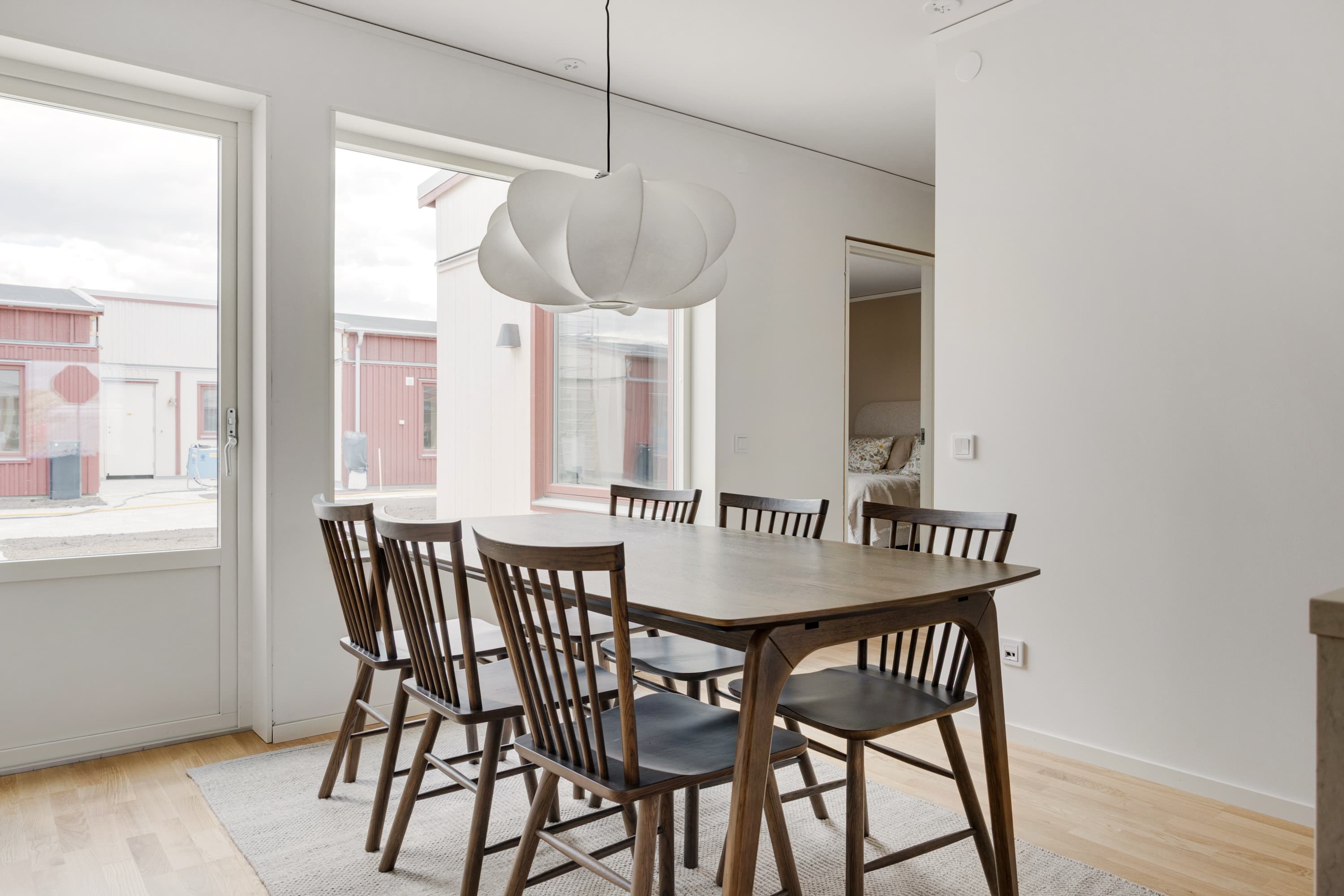 du kan sitta och hålla kocken sällskap innan middagen. Från köket har du öppen