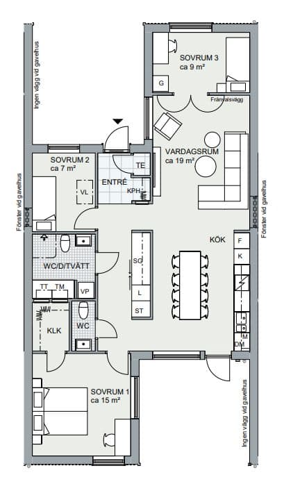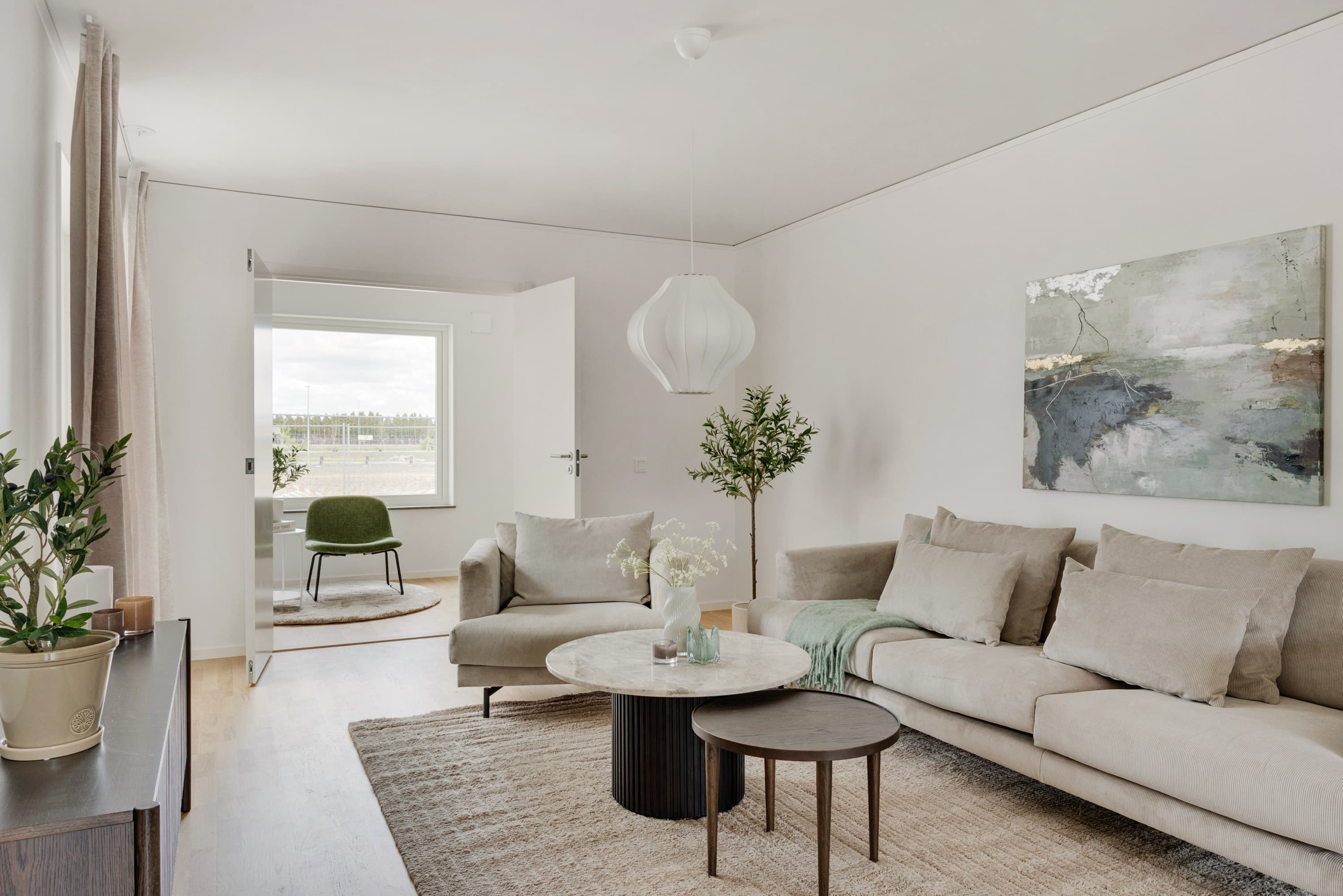 planlösning till vardagsrummet, vilket passar perfekt när du har vänner eller