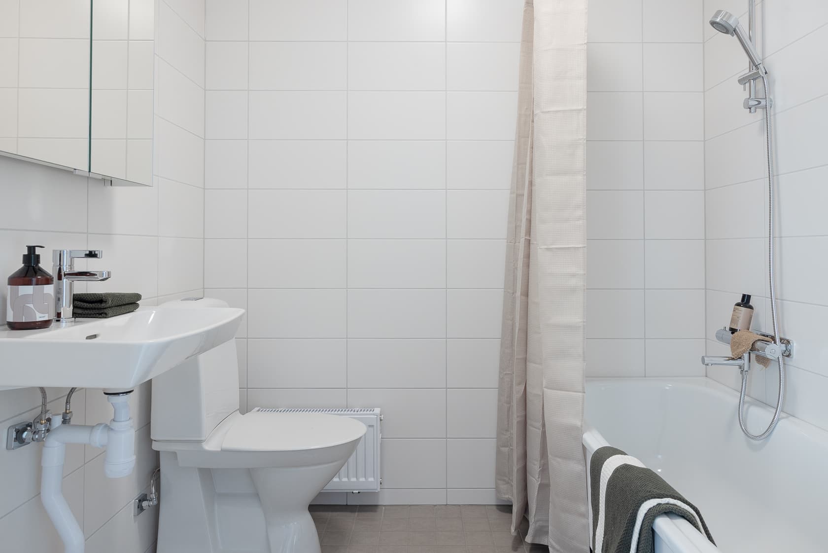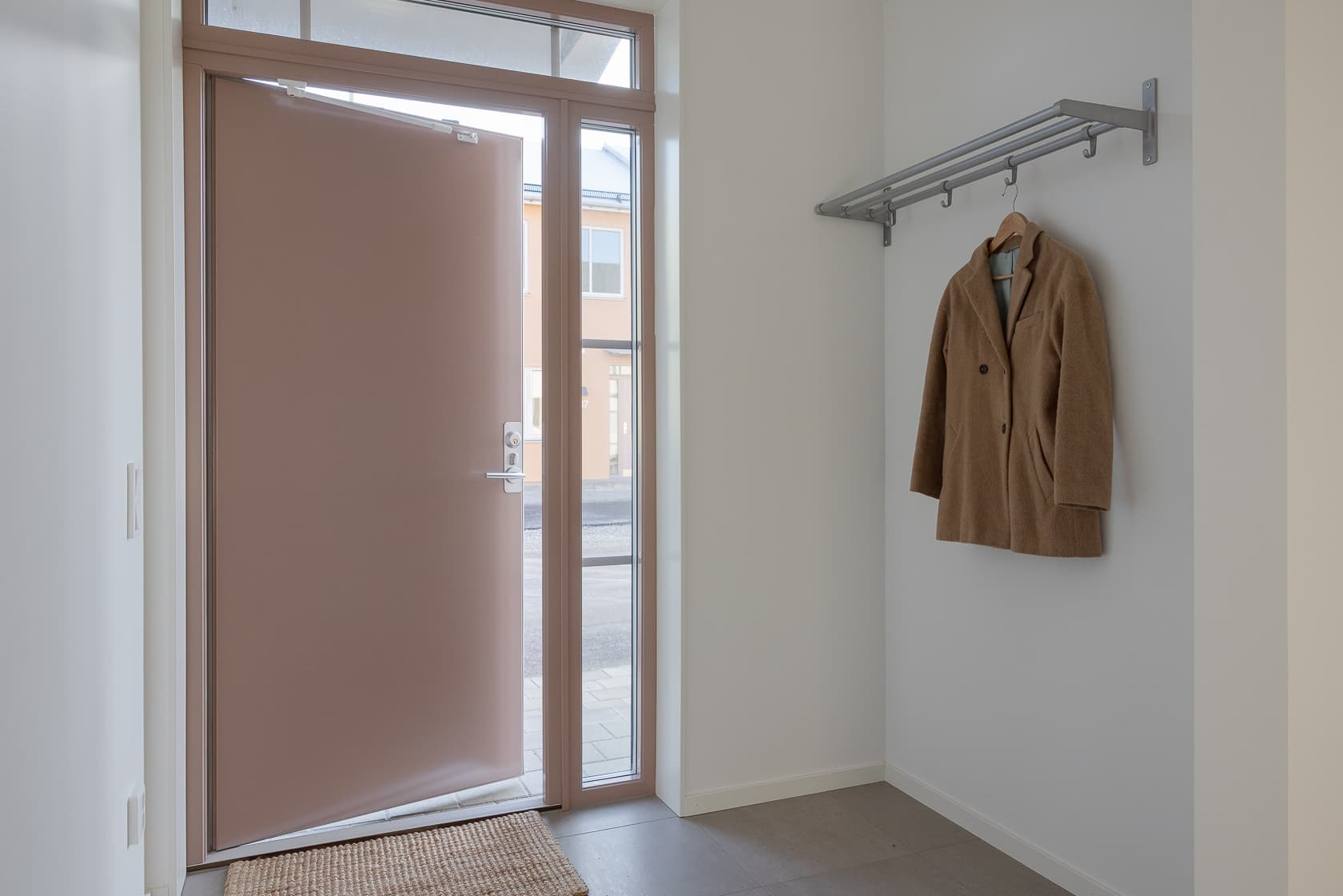 Här kliver du in i en hall med gott om förvaring och längre fram under trappan finns även ett förrådsutrumme. På entrésidan ligger hemmets trevliga kök med matplats, utrustat med allt du behöver för en bekväm vardag. I det helkaklade badrummet finns förutom wc och dusch-hörna även tvättmaskin och torktumlare med praktisk arbetsyta, som förenklar vardagsbestyren.