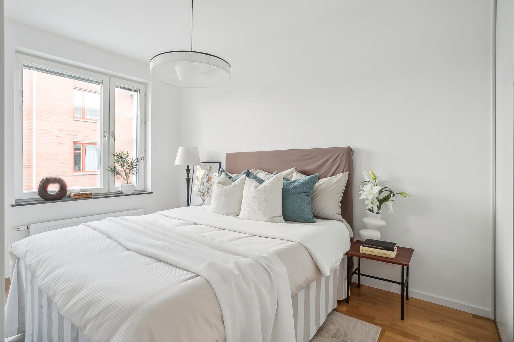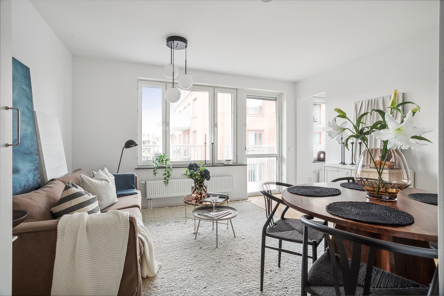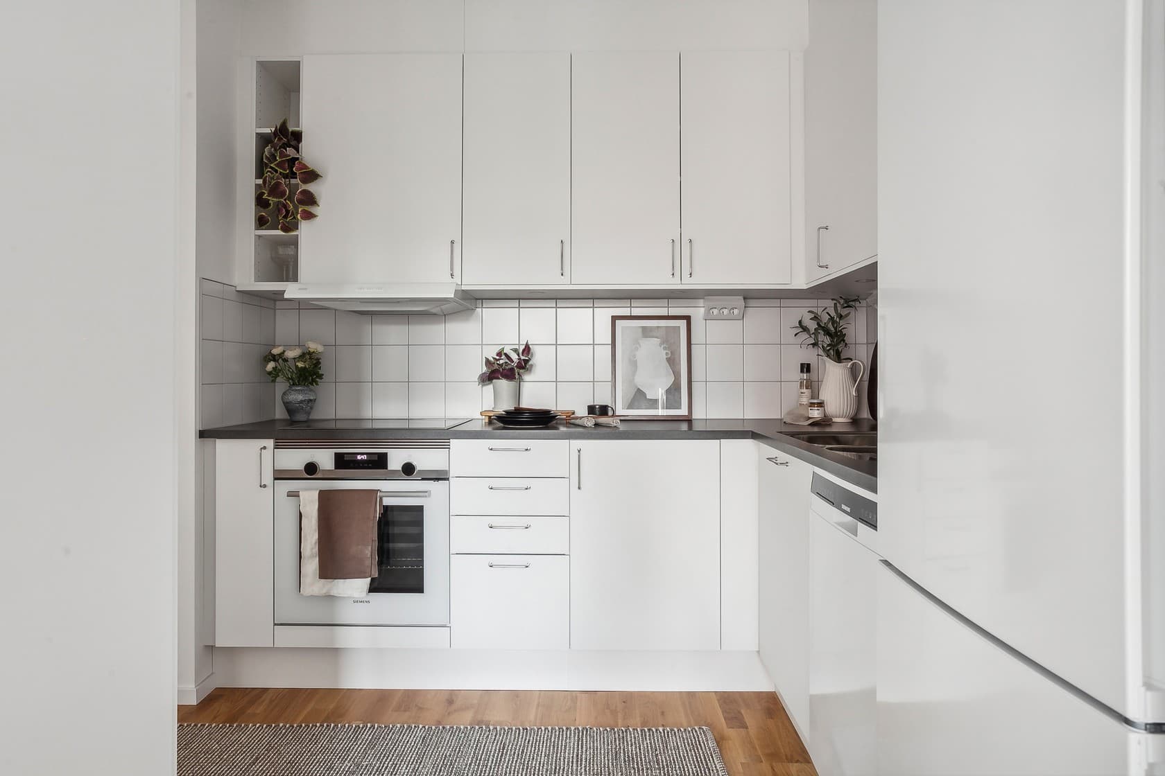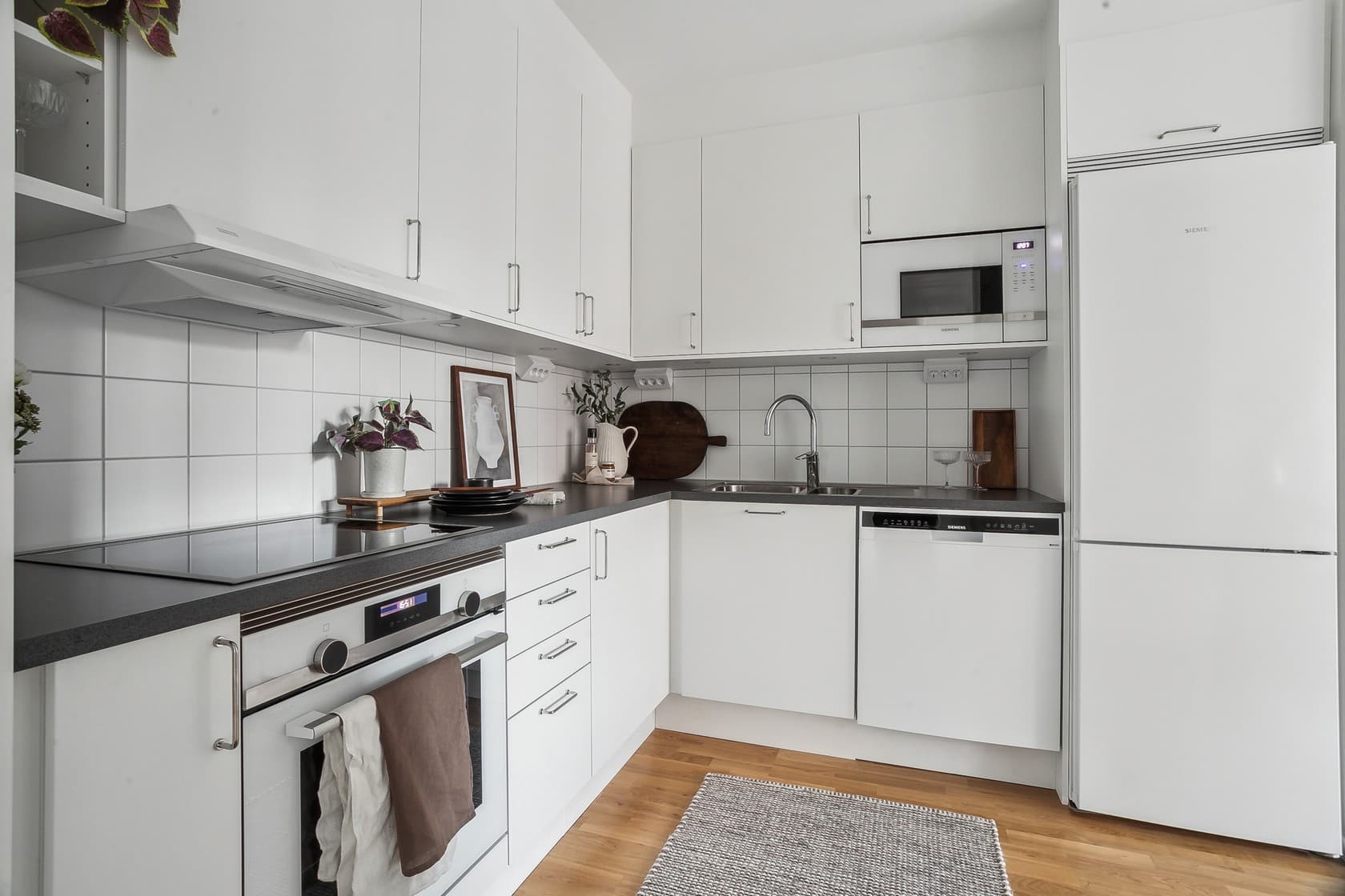 Här kan du njuta av god standard, med helkaklat badrum, kombinerad tvättmaskin och torktumlare, kök från HTH och vitvaror från Siemens - samt en härlig balkong som är vänd mot den gröna innergården.