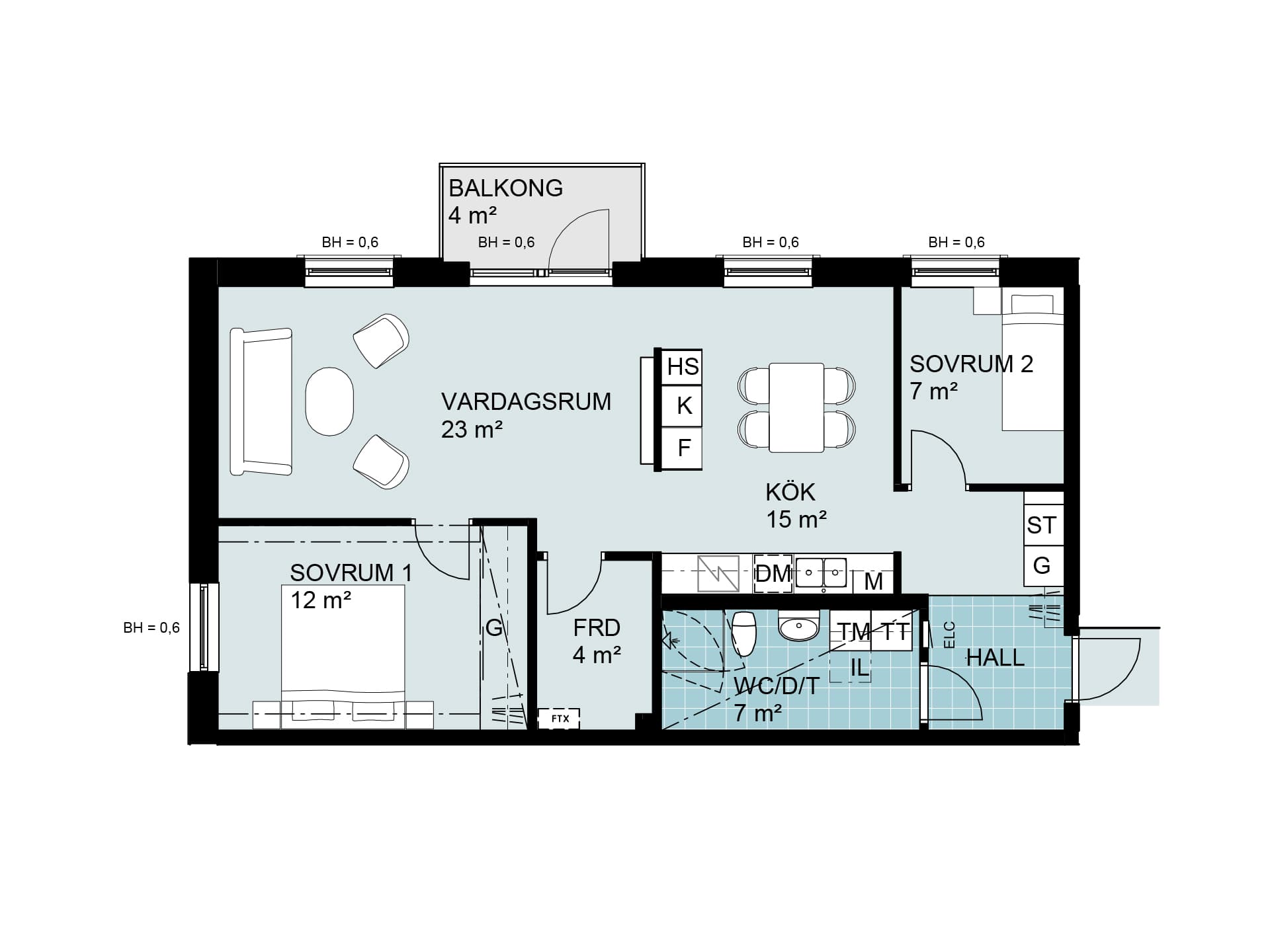 Bostad Lägenhet 2-1203 (OBOS Deläga) - Brf Esplanaden