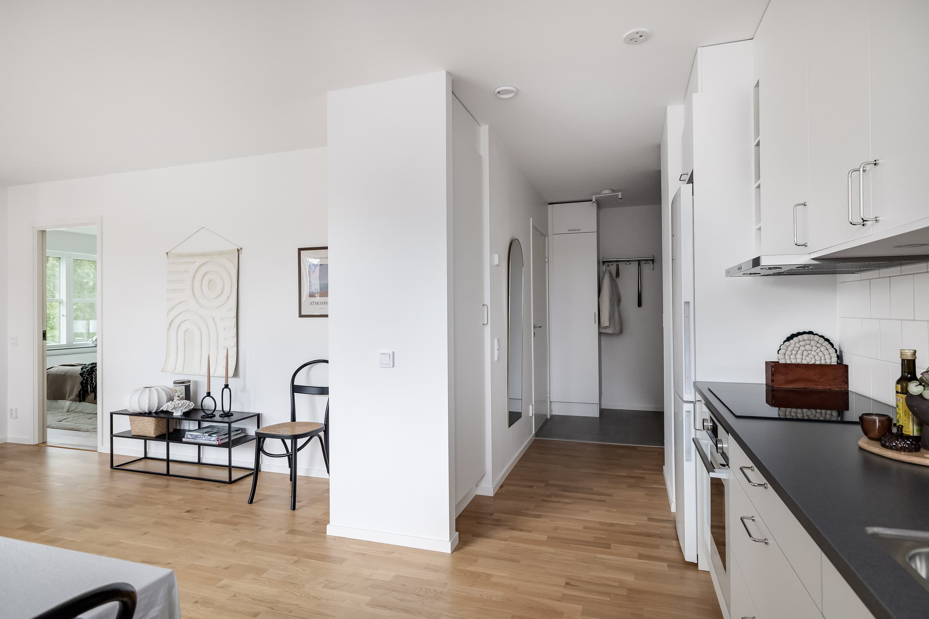 Välkommen till en välplanerad tvåa med gott om förvaring. Här kan njuta av trivsamma sällskapsytor med kök och vardagsrum i öppen planlösning samt en väderskyddad uteplats i perfekt sydväst läge. Sovrummet har en stor garderob och bostaden rymmer även ett praktiskt förråd.