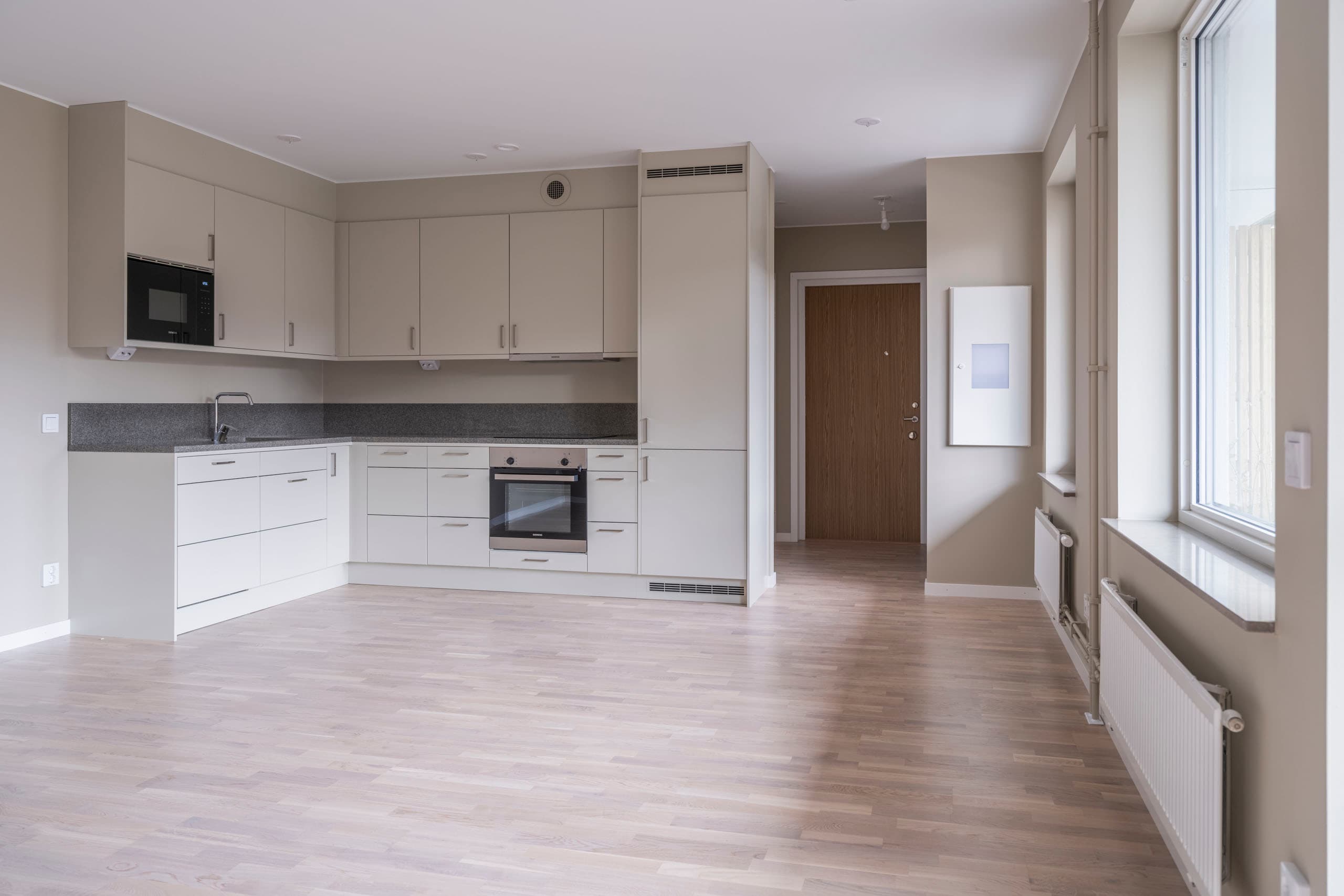 Effektivt planerad lägenhet med stor uteplats som rymmer önskvärt möblemang. Lägenheten erbjuder en generös sällskapsyta och det fullt utrustade köket ligger i öppen planlösning mot det rymliga vardagsrummet. Sovrum med plats för dubbelsäng och en rymlig skjutdörrsgarderob som maximerar förvaringen. Badrummet är generöst och stilrent med bland annat, handdukstork, dusch och kombimaskin. Bostaden är inredd i vår designlinje Höst som har vitlaserad ekparkett och går i beige toner i kök och badrum. Bostaden är inflyttningsklar – tillträdet är flexibelt.