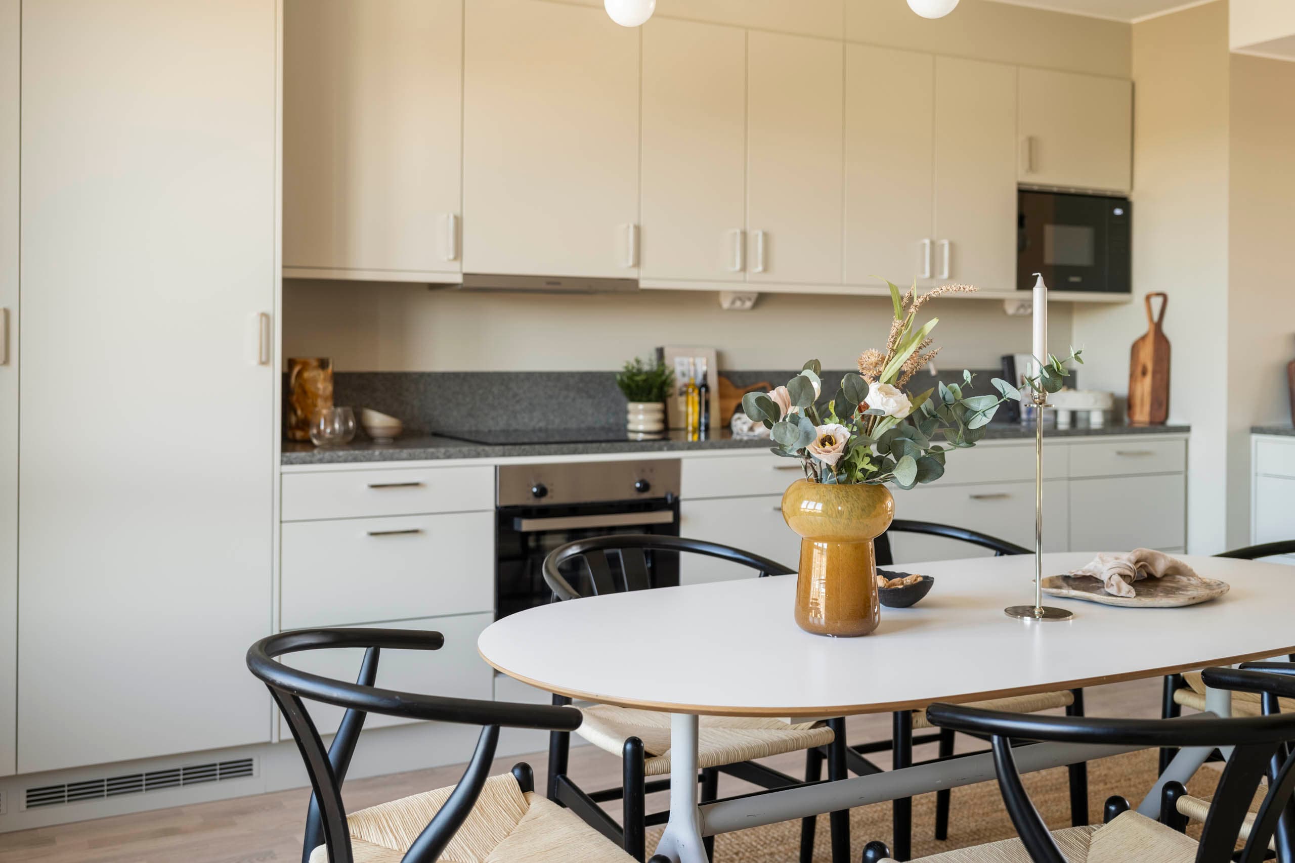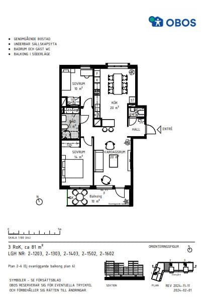 Genomgående lägenhet med ca 10 kvm balkong i söderläge med plats för utemöbler. Ett fullt utrustat kök med en rymlig matplats. Den luftiga planlösningen gör att du har kontakt med vardagsrummet. De två sovrummen ligger i separata lägen vilket skapar en privat känsla. Ett stilrent badrum med dusch, handdukstork, tvättmaskin och torktumlare. Dessutom finns en gäst WC. Bostaden är inredd i vår designlinje Höst med vitlaserad ekparkett och beige toner i kök och badrum. Inflyttningsklar med flexibelt tillträde.