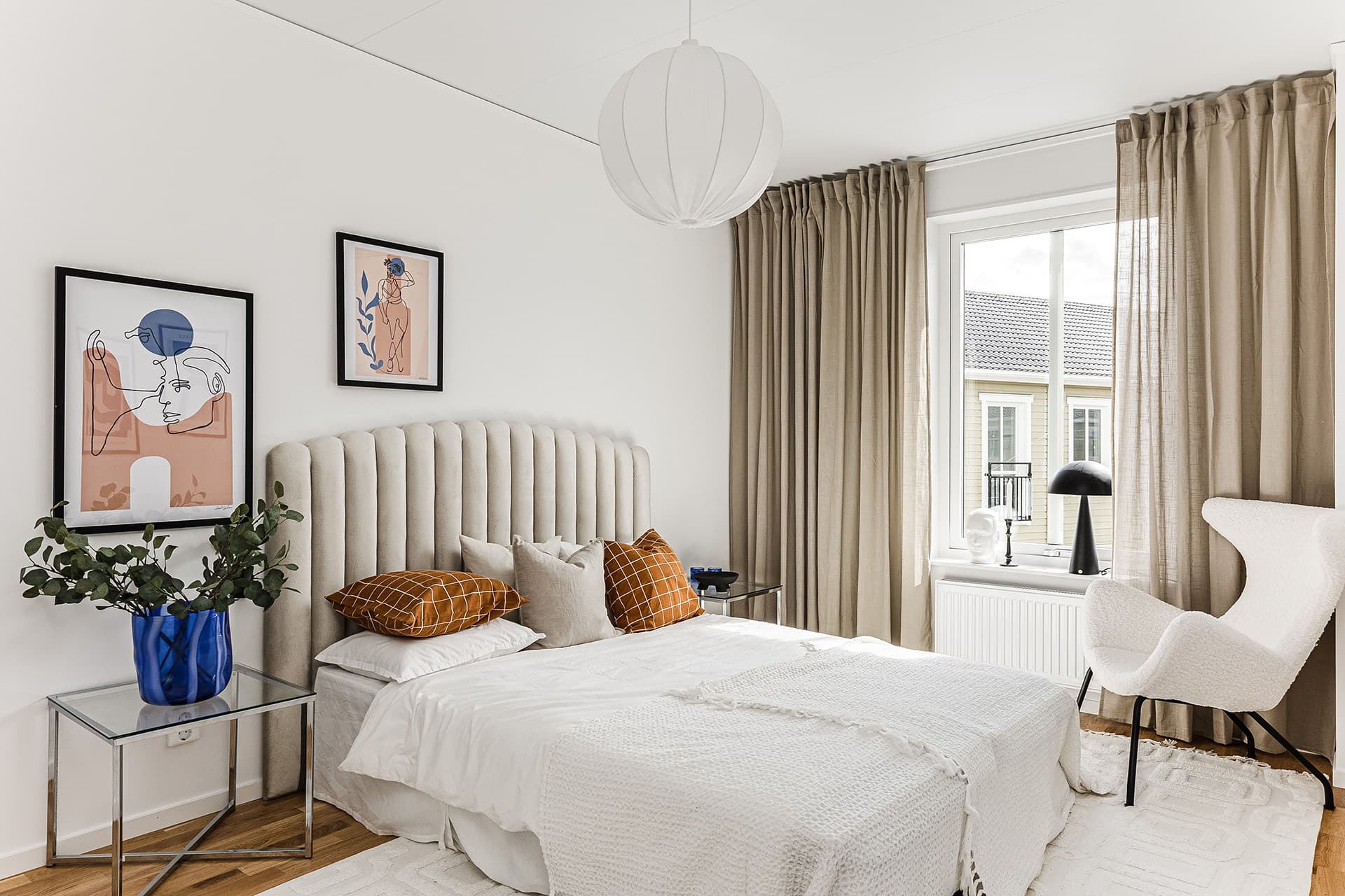 En trappa upp finns det gott om plats för familjens privata liv i tre trivsamma sovrum. Ett av dem bjuder på extra vardagslyx i form av en fransk balkong. Här finns även ett badrum med WC och dusch, en rejäl klädkammare och en mysig läs- eller arbetshörna. Räcker det med två sovrum? Annars kan du välja till ett tredje.