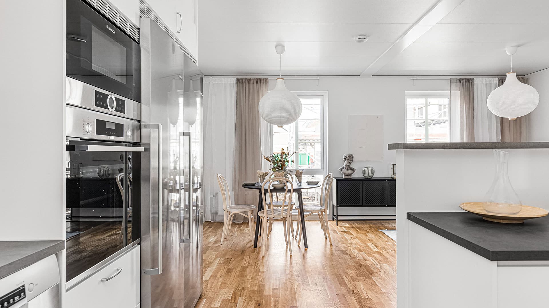 Materialvalen håller en genomgående god standard och inredningen är noga utvald för att hålla stilen i många år framöver, samtidigt som den lämnar plats för dig att sätta din egen, personliga prägel. Du får också ett praktiskt förråd som rymmer både vinterdäck och julpynt. Bilen parkerar du på din egen parkeringsplats, och självklart finns fiber indraget när du flyttar in.