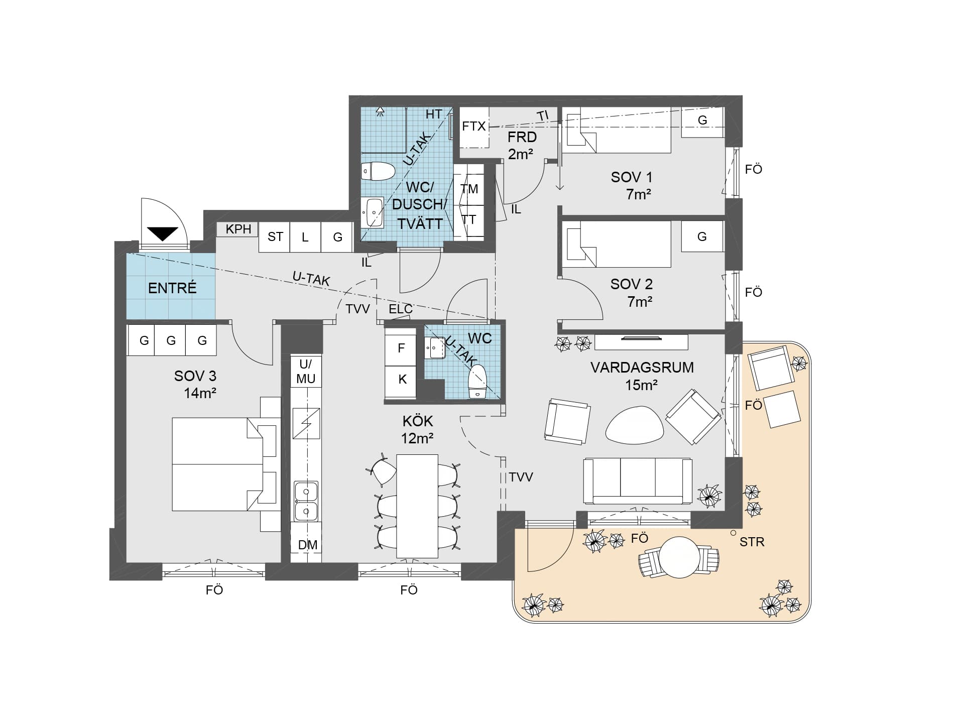 Lägenheten har en genomtänkt planlösning som du enkelt anpassar efter behov: behåll den öppna känslan eller sätt upp en vägg för att avgränsa kök och vardagsrum. Härlig balkong som förlänger vardagsrummet under sommarhalvåret – och dessutom en extra WC för bekväm vardag.