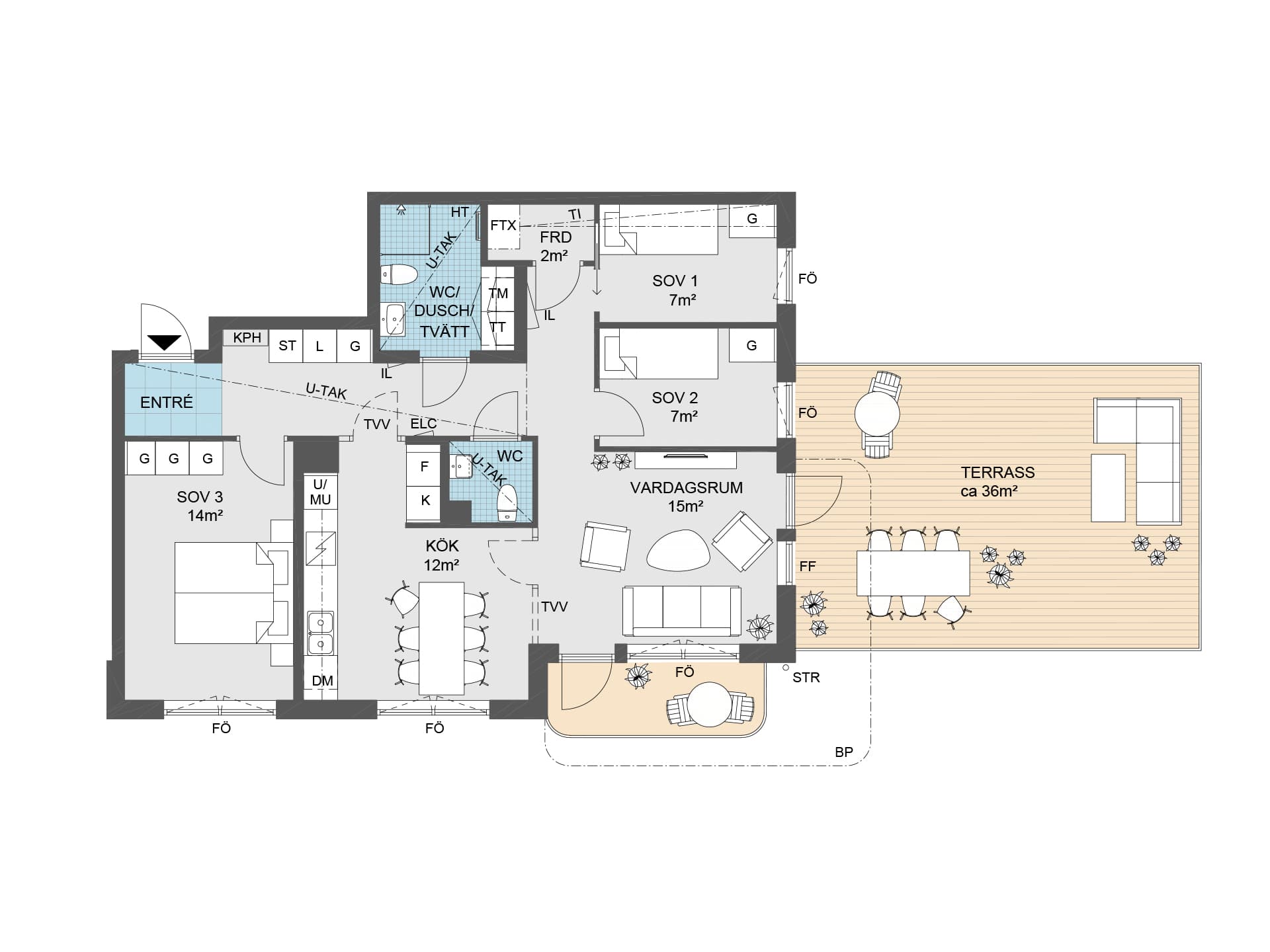 Här bjuds du på en ljus fyra om 87 kvadrat på andra våningen med flexibel planlösning. Du kan behålla den öppna lösningen eller välja att skilja av köket med en vägg mot vardagsrummet. Fantastisk balkong/uteplats samt en extra WC.