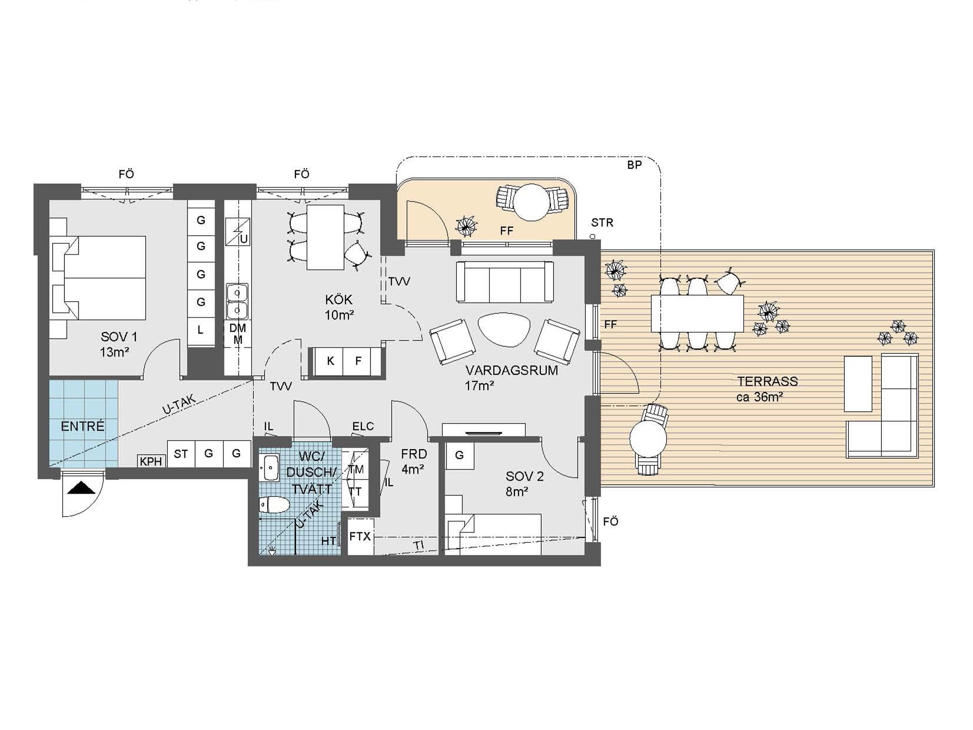 75 välplanerade kvadrat med flexibel planlösning mellan kök och vardagsrum – du kan behålla den öppna planlösningen eller välja att skilja av köket med en vägg mot vardagsrummet. Fantastisk balkong/uteplats att njuta av!