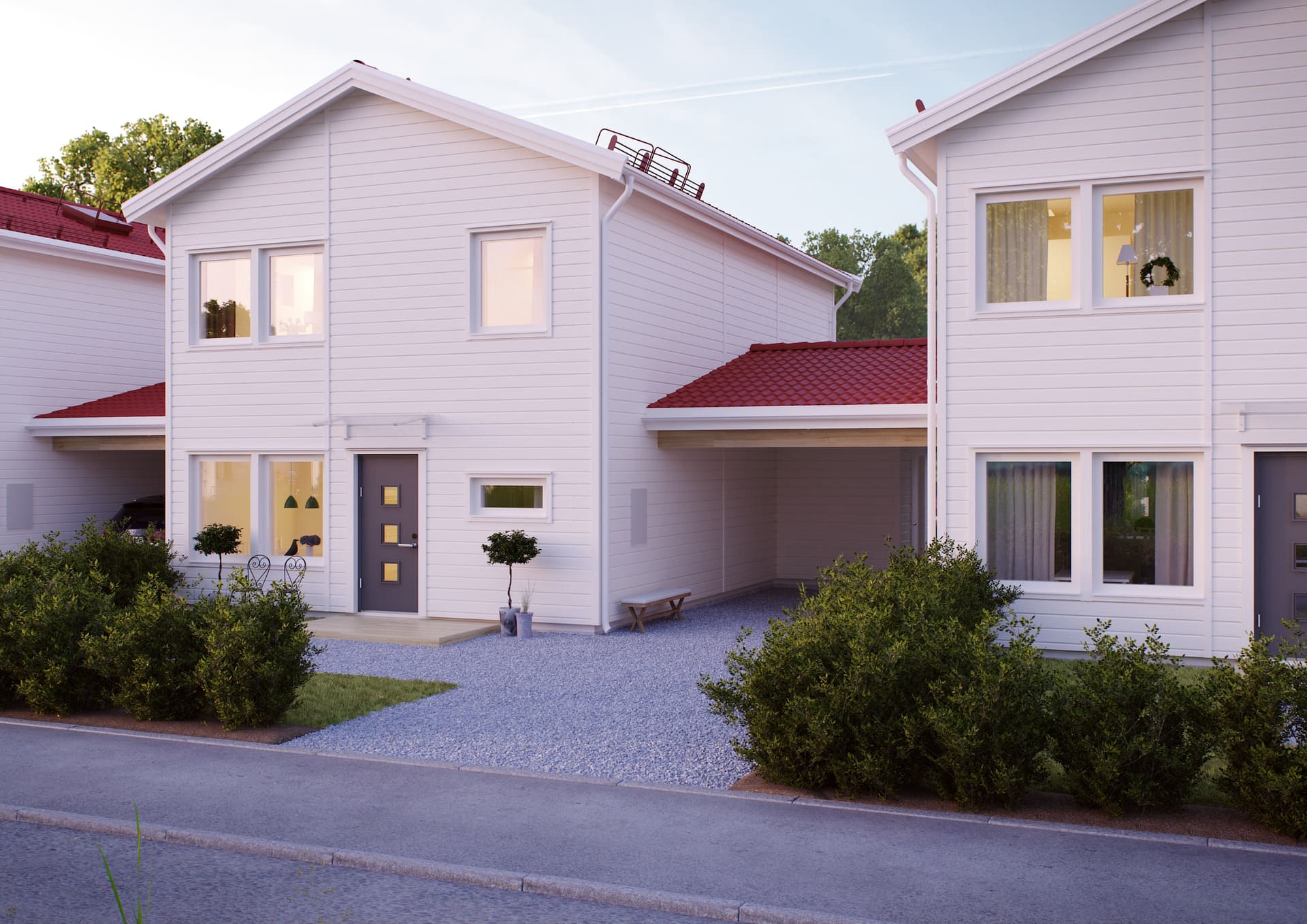 Husen byggs i två grupper om 7 och 3 hus och säljs i samarbete med Fastighetsbyrån.
