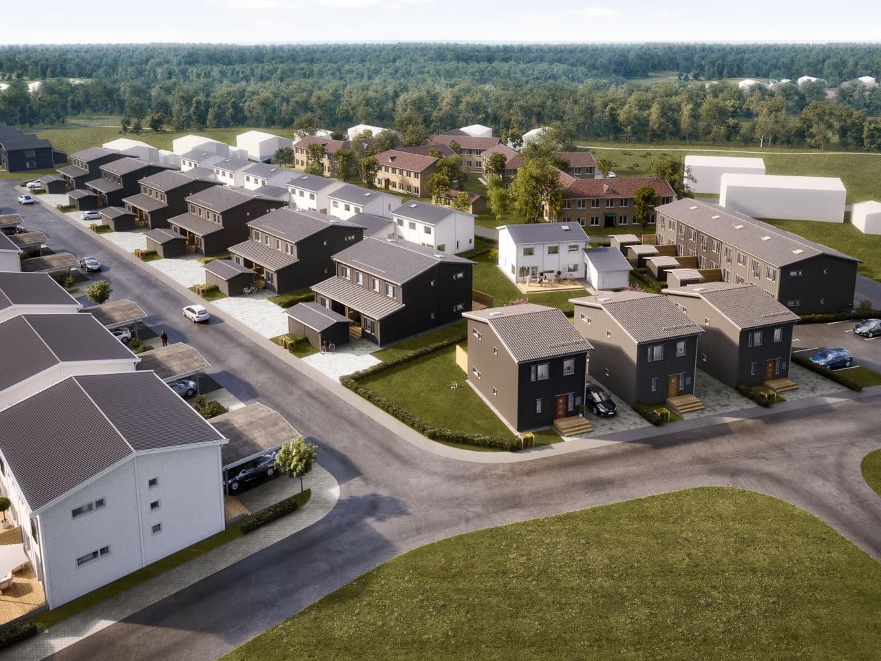 - Det blir bostadsrätter med egen täppa. 6 parhus om 120 kvm, ett radhus med 5 lägenheter om 107 kvm och 3 friliggande villor om 107 kvm – samtliga i två plan, säger projektutvecklare Eva Dahlgren. De byggs utmed Skogsdungegatan och Ängavångsgatan och blir del av ett redan trivsamt område.