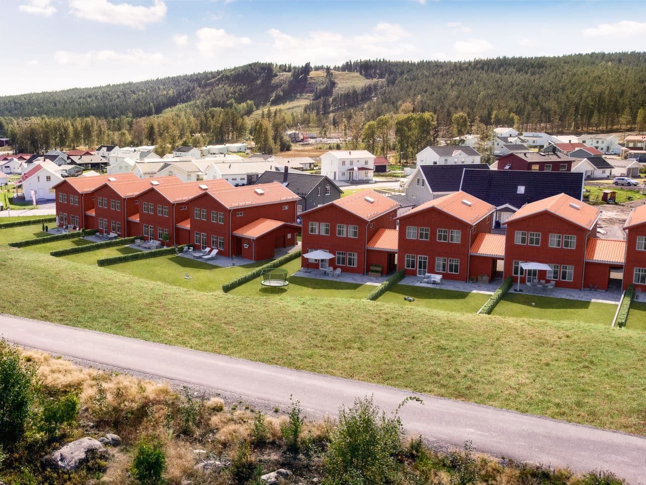 På Sara Lisas väg i Lilla Källviken, Falun, planerar OBOS för 14 villor i kedjehusform och nu byggstartar projektet med åtta sålda hus.