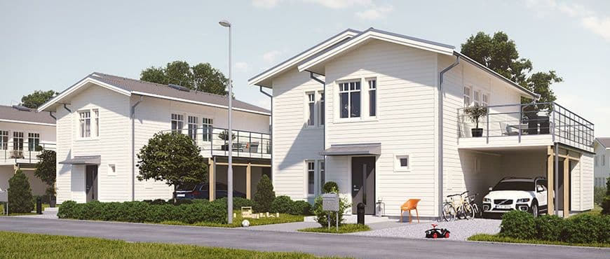 - Husen har öppen planlösning och det ingår en stor takterrass, carport och förråd, berättar projektutvecklare Matts Sandberg.