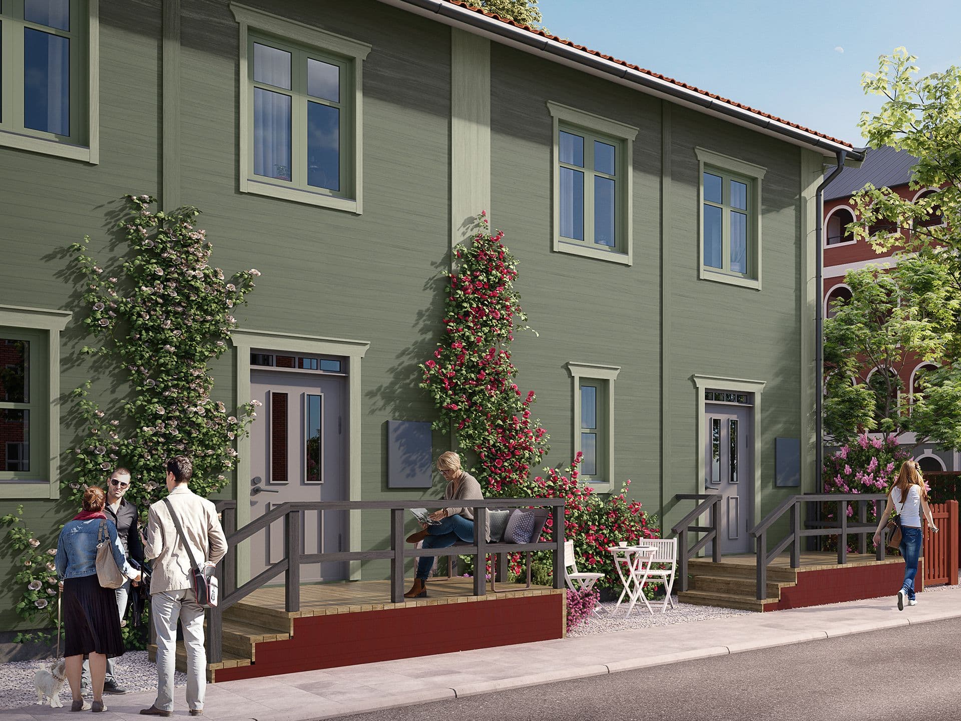 - Vi använder oss ofta av Start Living då det är en både snabb, miljösmart och kvalitetssäkrad produkt, förklarar Per. Ytterligare en fördel med konceptet är att man kan anpassa fasaderna beroende på projektets förutsättningar. Här i den pittoreska trästaden Nora har vi ambitionen att välja fasader med lite mer snickarglädje som rimmar väl med den omgivande miljön.
