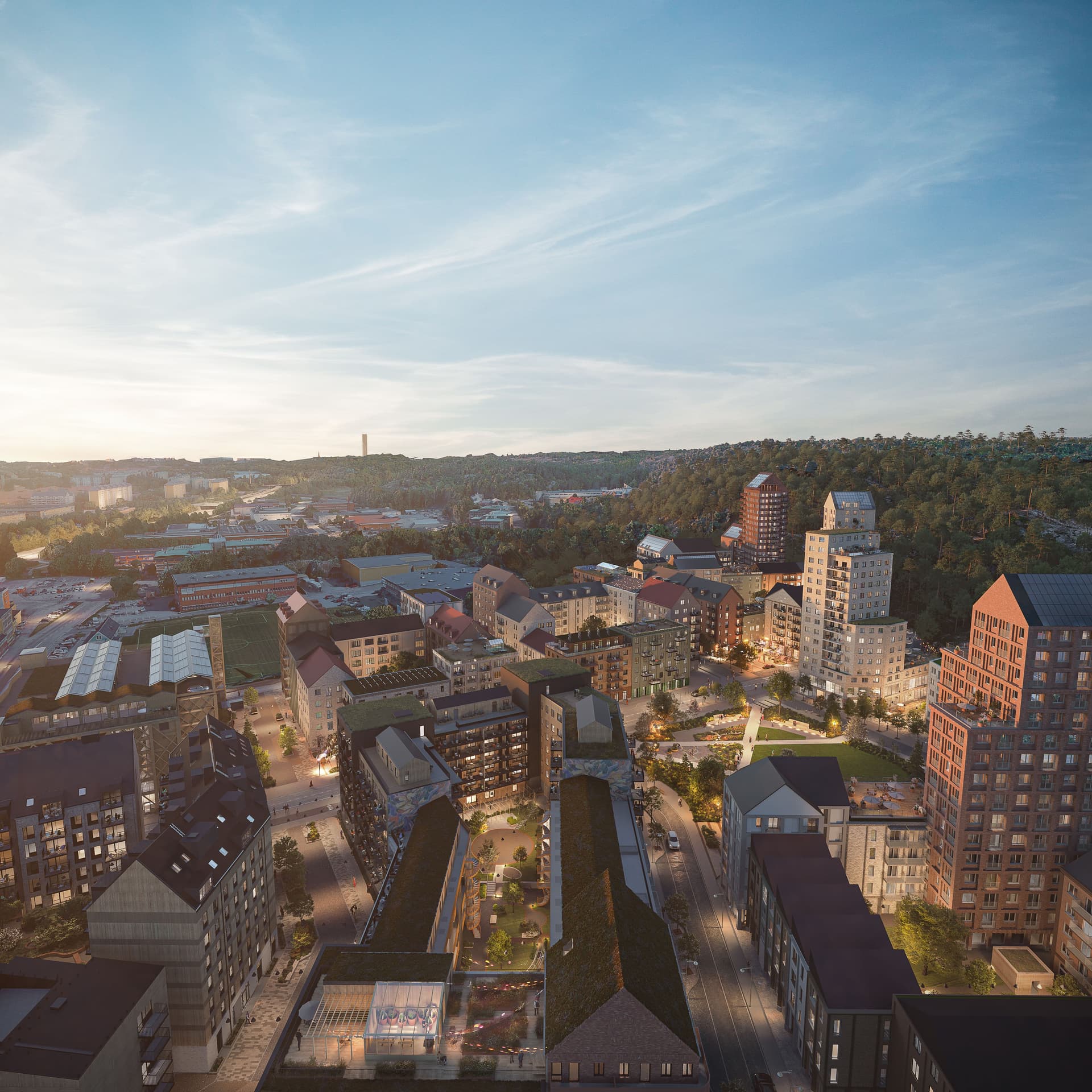 En ny stadsdel växer fram i det gamla industriområdet i Högsbo, där det planeras för totalt cirka 1 900 bostäder, butiker, caféer, restauranger samt skola och förskola. OBOS genomför med detta ett stort projekt i Göteborgs Stad som innebär premiär för Deläga, där kunden köper minst halva bostaden och äger resterande ihop med OBOS, i kommunen. En modell som sänker trösklarna för fler till det äga boendet.