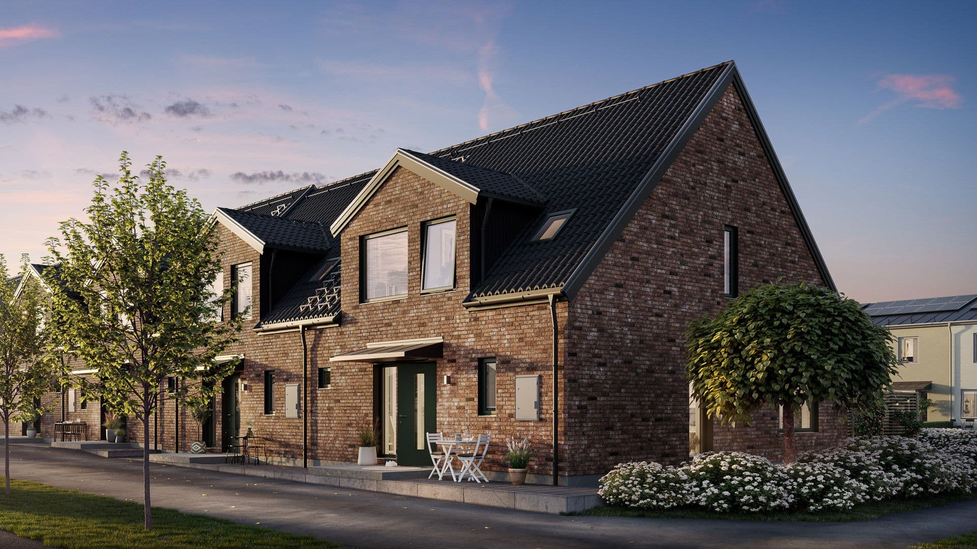 De åtta radhusen i Kvarter Sidenspirea har ett frånpris på 5 695 000 kronor. Inflyttning beräknas till andra kvartalet av 2025.