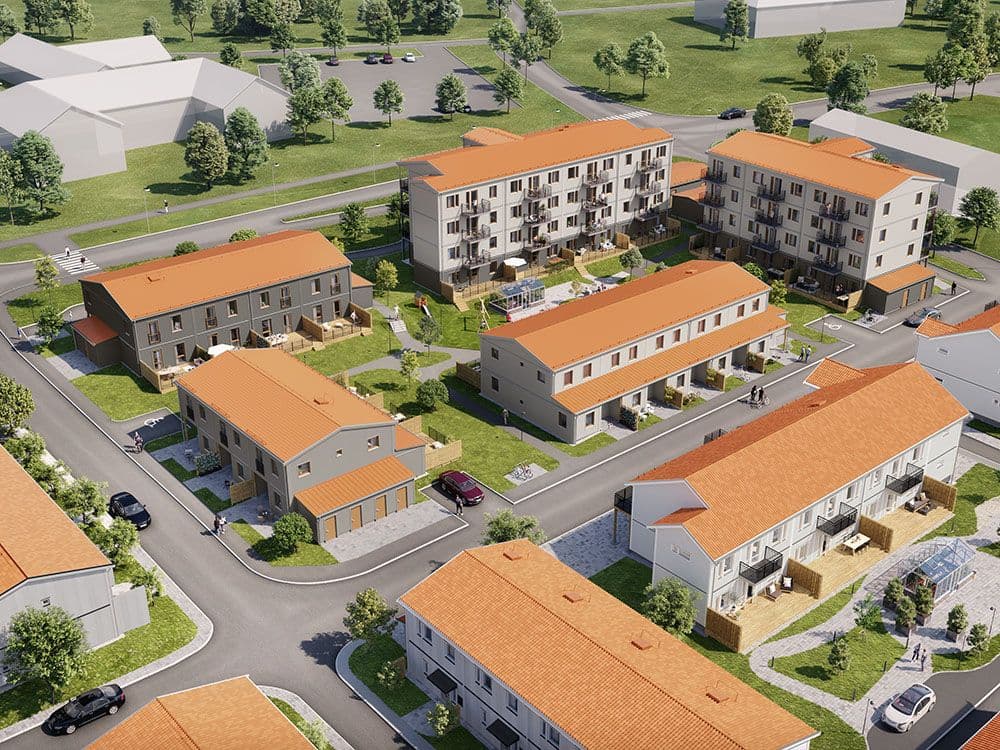 – Här vill vi skapa ett kvarter där alla kan trivas. Radhusen är ju perfekt anpassade för barnfamiljer, medan lägenheterna passar flera olika kundgrupper. Flerbostadshusen har också hiss, vilket ökar tillgängligheten, tipsar Henric.