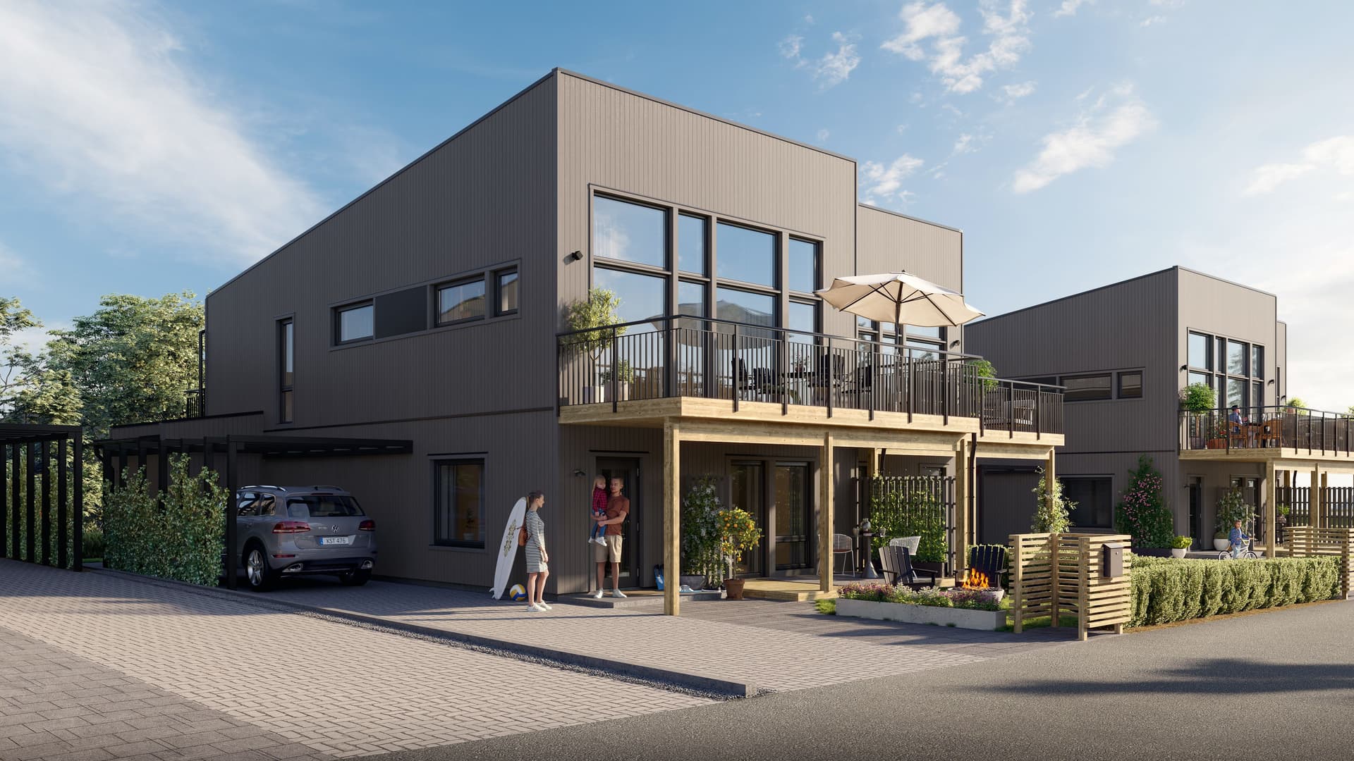 - För oss är det viktigt att husen passar väl in i den vackra miljön och vi bygger alltid med hänsyn till omgivningen. Vi kommer att ge husen en modern gestaltning och färgsätta dem i en mjukt sandfärgad kulör med svarta detaljer som ger extra karaktär, fortsätter Elisabeth Berntsson.