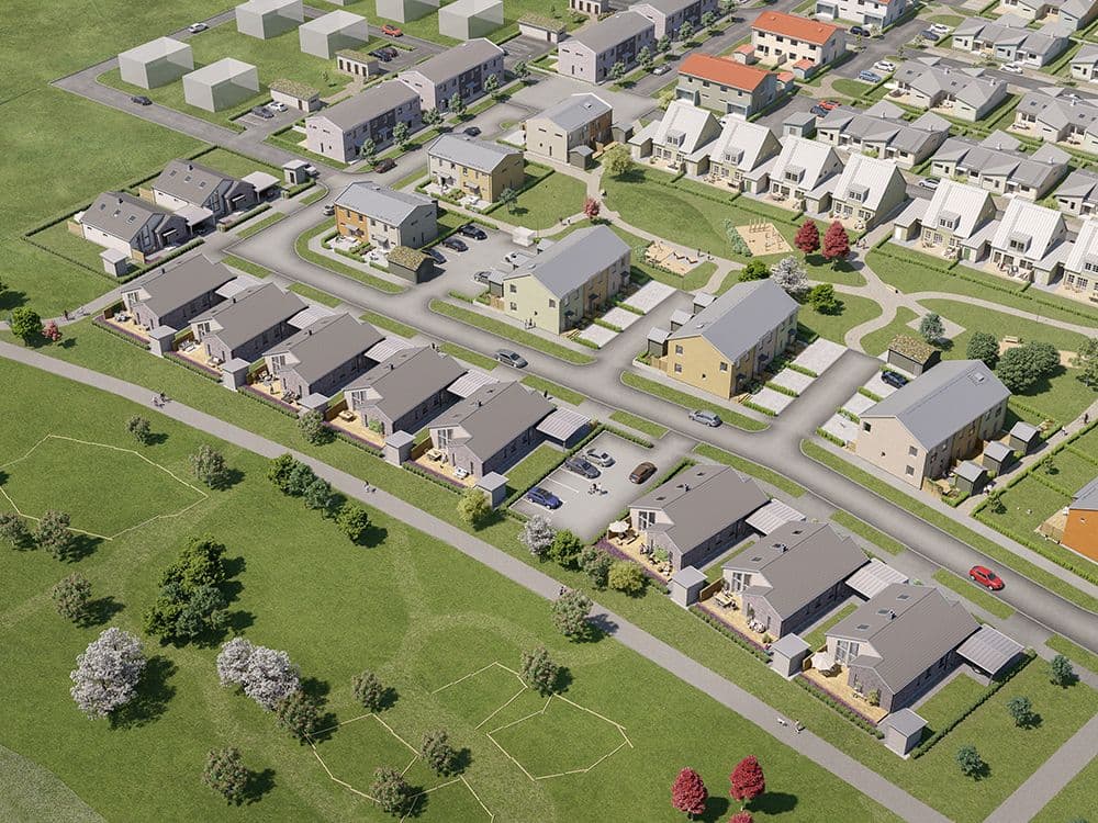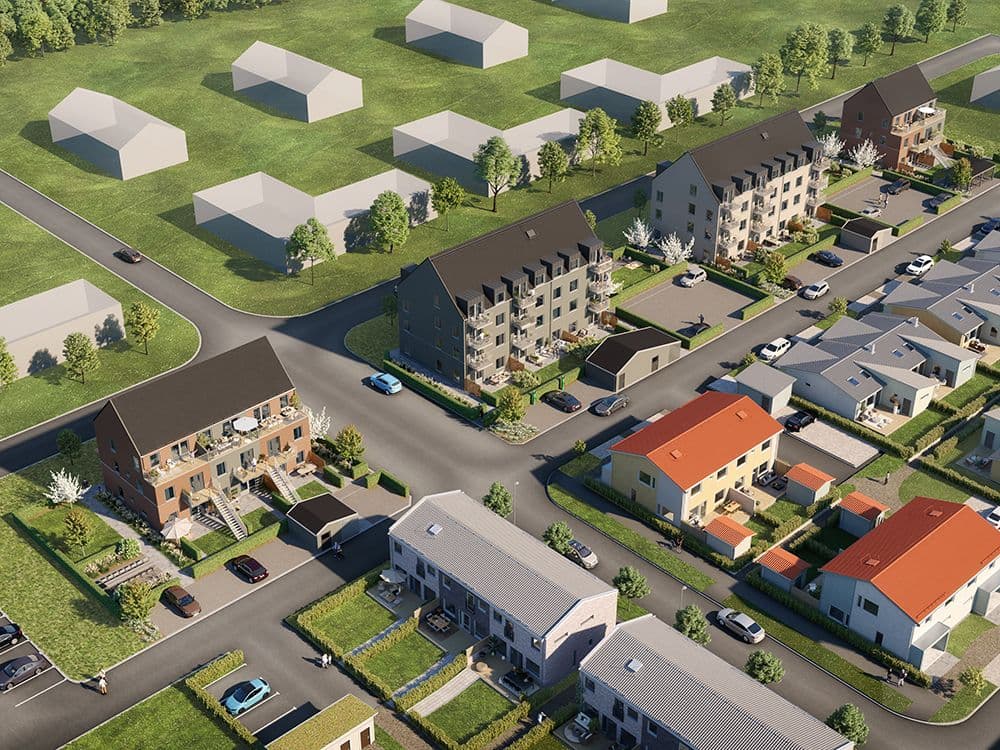 OBOS bygger nytt i Skogstorp – säljstart för familjevänliga par- och radhus