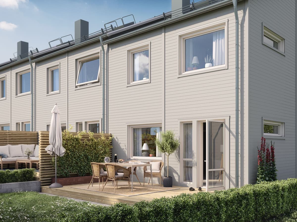 Brf Kadetten med 14 bostäder i parhusformat bygger vidare på OBOS tidigare projekt i Norra Åsum.